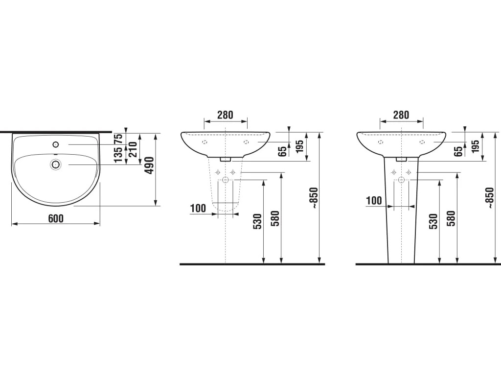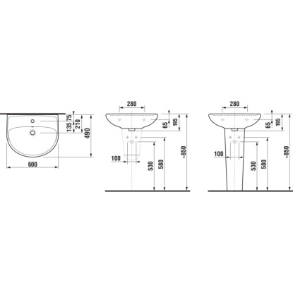 Jika Umyvadlo LYRA PLUS s 1 otvorem uprostřed, 600 x 490 x 195 mm