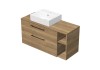 INTEDOOR koupelnová skříňka BEE s keramickým umyvadlem na desku je vyrobena z LTD 18 mm. Skříňka má dvě zásuvky s funkcí pomalého dovírání Soft-Close a krycí desku o síle 1,8 cm. V horní zásuvce je výřez na sifon. Umyvadlo je umístěno na levé straně skříně. Na pravé straně vedle zásuvek je otevřená police.
