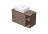 INTEDOOR koupelnová skříňka BEE s keramickým umyvadlem na desku je vyrobena z LTD 18 mm. Skříňka má dvě zásuvky s funkcí pomalého dovírání Soft-Close a krycí desku o síle 1,8 cm. V horní zásuvce je výřez na sifon. Umyvadlo je umístěno na levé straně skříně. Na pravé straně vedle zásuvek je otevřená police.