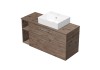 INTEDOOR koupelnová skříňka BEE s keramickým umyvadlem na desku je vyrobena z LTD 18 mm. Skříňka má dvě zásuvky s funkcí pomalého dovírání Soft-Close a krycí desku o síle 1,8 cm. V horní zásuvce je výřez na sifon. Umyvadlo je umístěno na pravé straně skříně. Na levé straně vedle zásuvek je otevřená police.