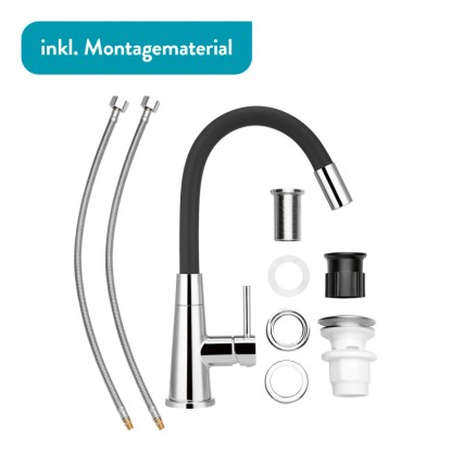 baliv Páková umyvadlová baterie WT-690 s flexi ramenem, černá-chrom