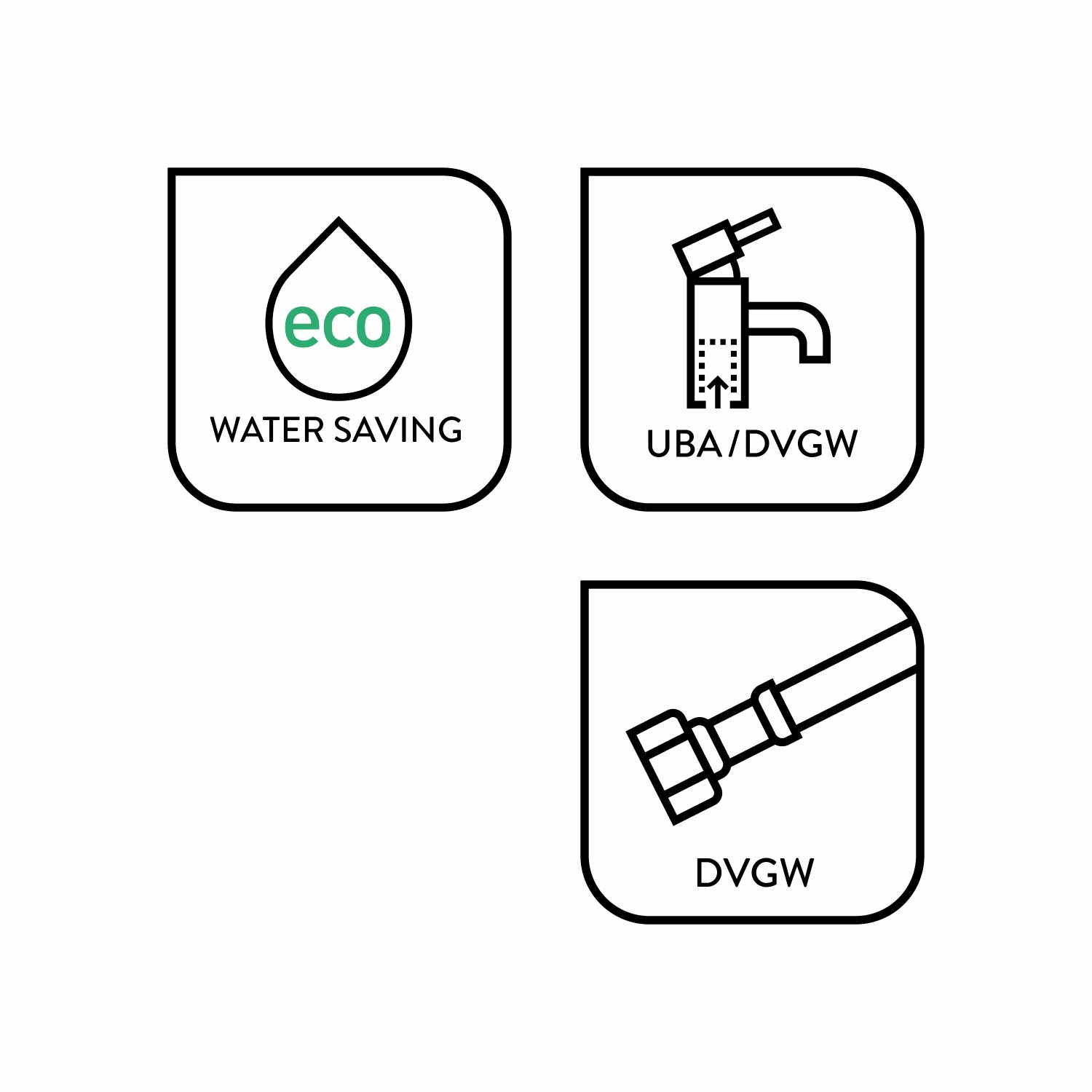 V naší výrobě klademe přirozeně důraz na používání pouze kvalitních materiálů. Hezký vzhled dodává vodovodní baterii její chromovaný povrch. Musí však být také robustní a trvanlivá a proto je vyrobena ze solidní mosazi. Všechny součásti naší vodovodní baterie, které přicházejí do kontaktu s pitnou vodou, splňují proto vysoké hygienické standardy aktuálního nařízení o pitné vodě Spolkového úřadu pro ekologii (UBA) a Německého plynárenského a vodárenského svazu (DVGW).