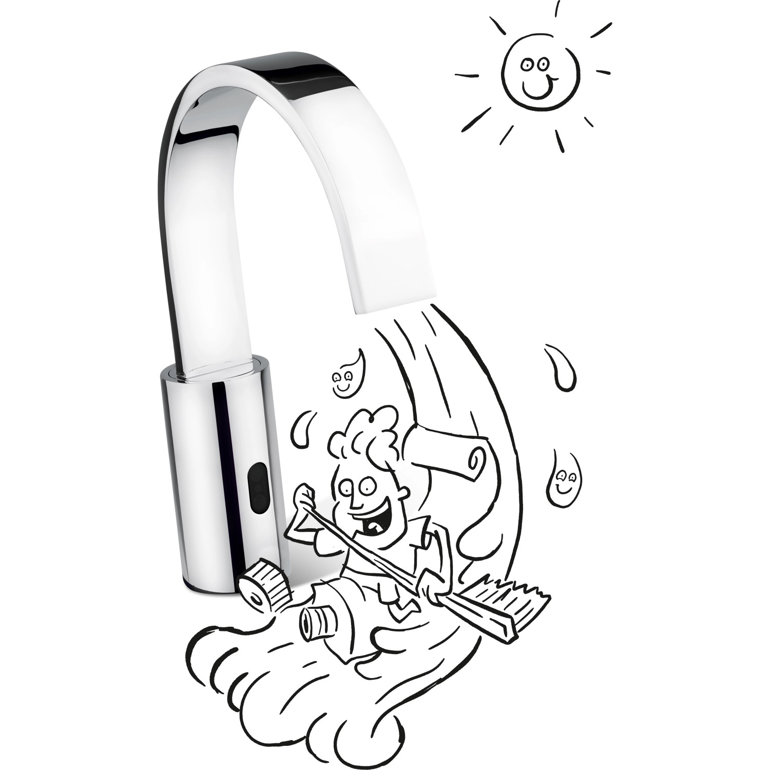 A také její funkce představuje osvěžující změnu: Díky senzoru stačí podržet ruce pod kohoutkem a voda se spustí automaticky. Je to nejen hygienické, ale šetří to i vodu - prostě čistá věc! Ale to není ještě všechno: Také teplotu si můžete libovolně nastavit a zátku lze díky ventilu pop-up otevřít pohodlně pouhým stisknutím prstem.