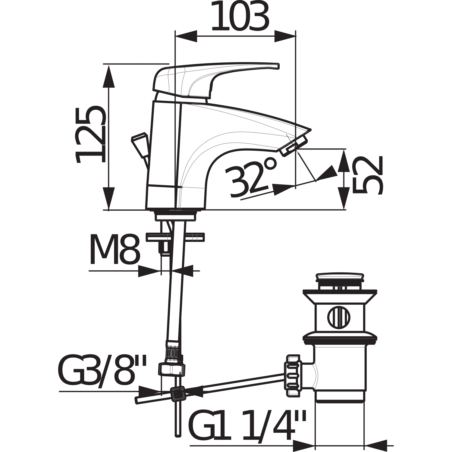 Stojánková umyvadlová baterie série DEEP by Jika bez automatické výpusti. Výtok 103 mm. Průtok 5,7 l/min.