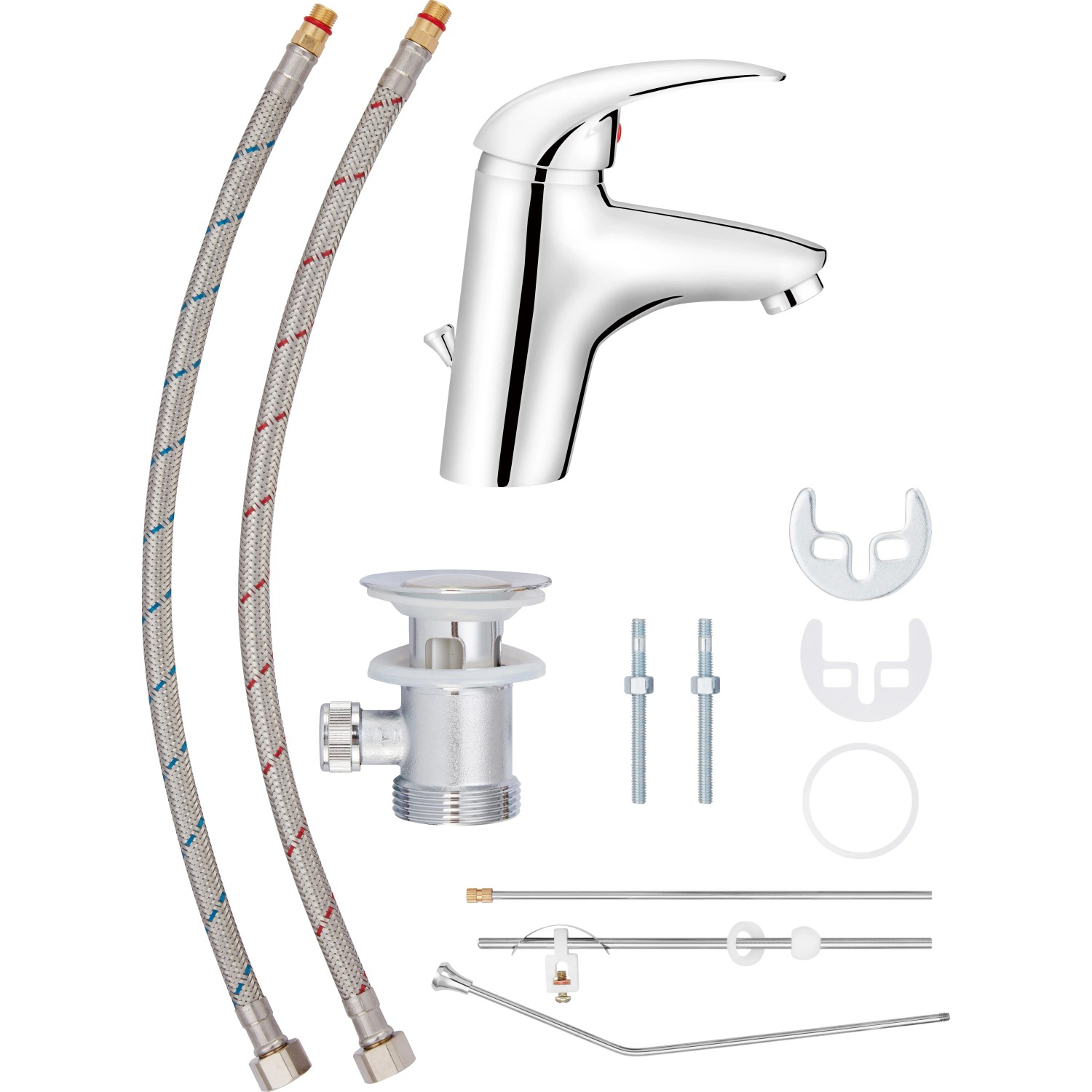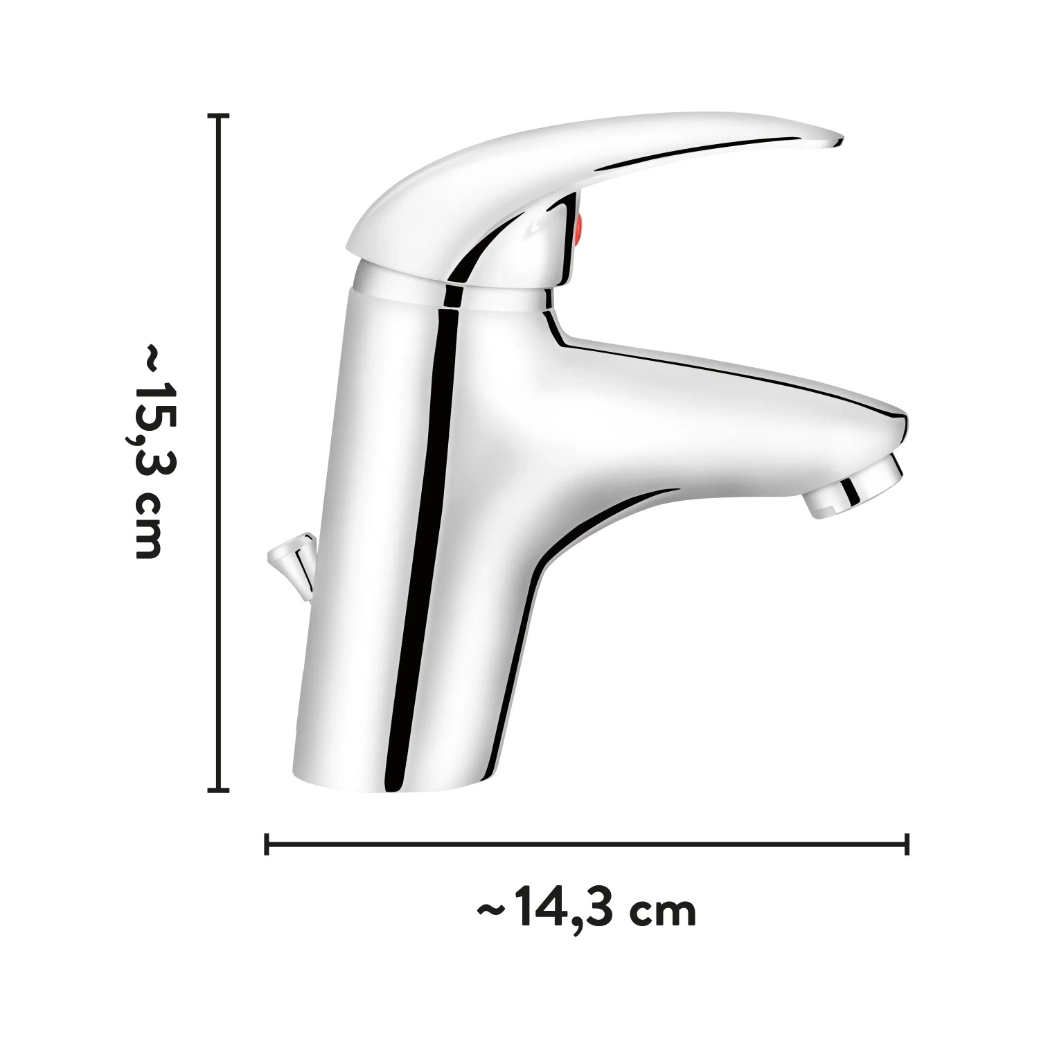 Chromovaná OBI DECO-LINE umyvadlová baterie ze série Fresh má osvědčenou značkovou kartuši a směšovací trysku Neoperl. Baterie je dodávána s excentrickou odpadní sadou. Chromovaná baterie je vybavena připojovacími hadicemi, které odpovídají aktuální legislativě pro pitnou vodu. Tato designově pěkná baterie je vhodná pro montáž na umyvadlo. Díky ovládání jednou rukou lze snadno regulovat průtokové množství a teplotu vody.