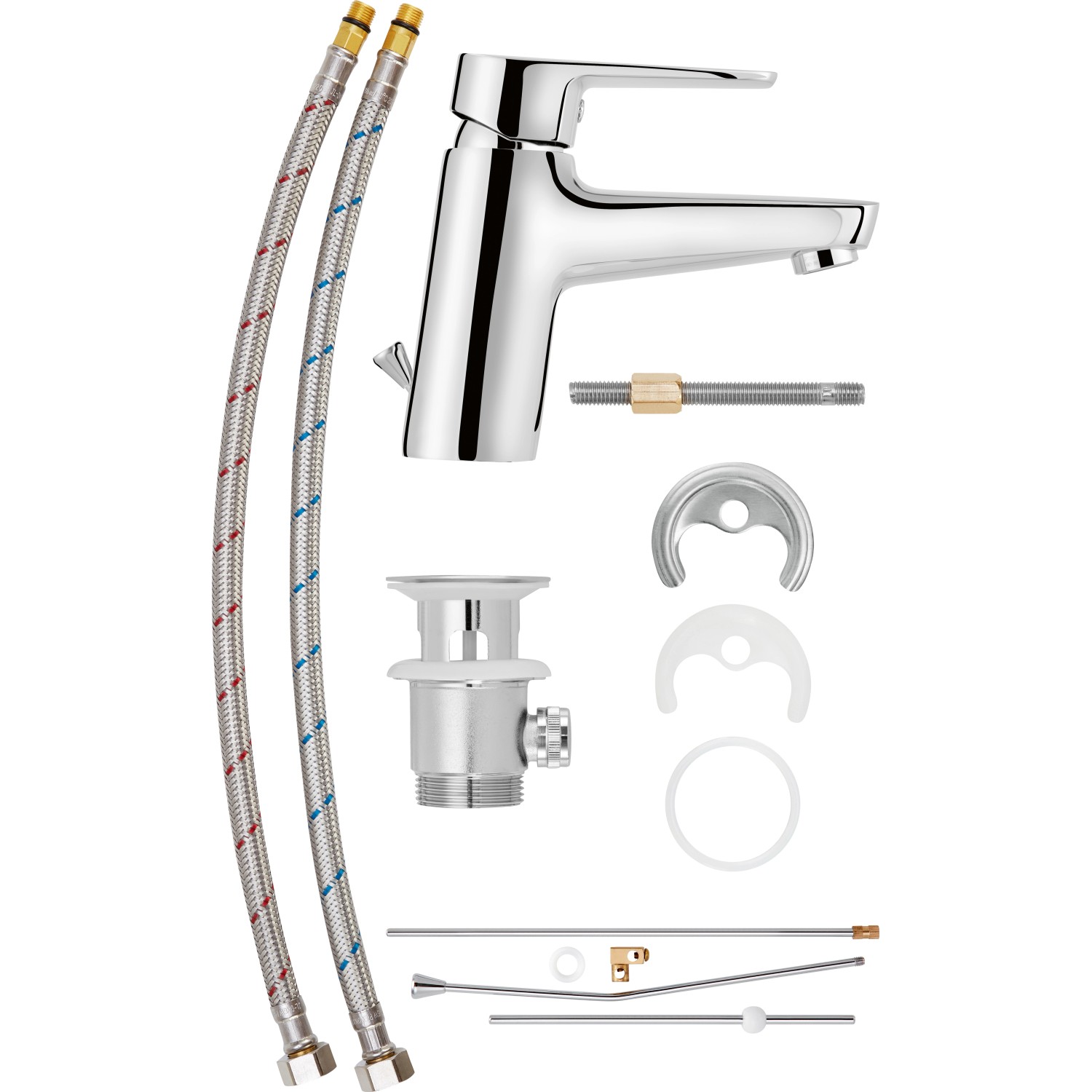 Chromovaná OBI DECO-LINE umyvadlová baterie Gallinas má funkci úspory vody. Při otevření páky napůl je možné dosáhnout úspory až 50 procent. Kartuše má k tomuto účelu integrovaný odpor pro otevírání průtoku. Teprve po překonání odporu je dosaženo plné průtokové množství vody. Stylově navržená baterie je osazena osvědčenou značkovou kartuší, směšovací tryskou Neoperl a připojovacími hadicemi v souladu s aktuální legislativou pro pitnou vodu a je dodávána s excentrickou odpadní sadou. Díky ovládání jednou rukou lze snadno regulovat průtokové množství a teplotu vody.