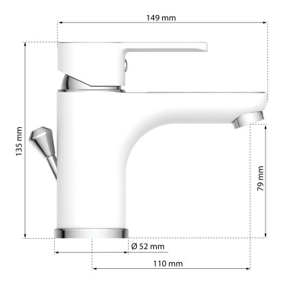 - Materiál: mosaz s povrchovou úpravou, bílá/chromová