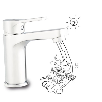 Chromová páková umyvadlová baterie. Velikost: 134 mm x 52 mm x 144 mm.