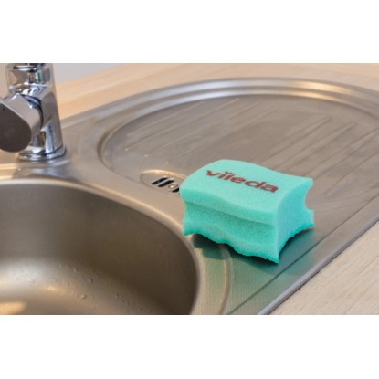 Revoluční typ houbiček s ergonomickým tvarem. PUR aktivní povrch odstraní zaschlou špínu bez poškrábání povrchu. S chráničem nehtů. Ideální pro drahé nádobí, jemné povrchy (teflon) a sklokeramické desky. Balení obsahuje 2 ks. Rozměr houbičky 7 x 4,5 x 9 cm. Rozměr balení: 14 x 4,5 x 9,5 cm.