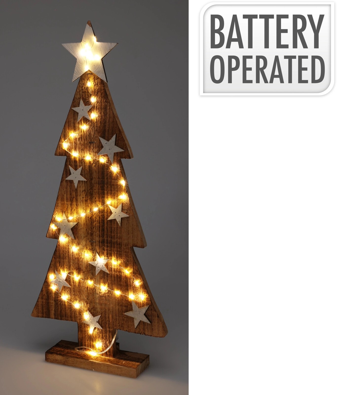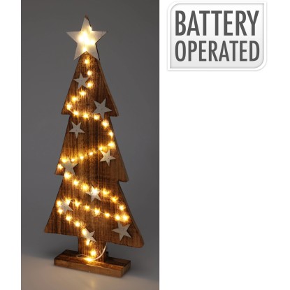 Dřevěný vánoční stromek s osvětlením 50 LED teplá bílá, 25 x 6 x 54 cm