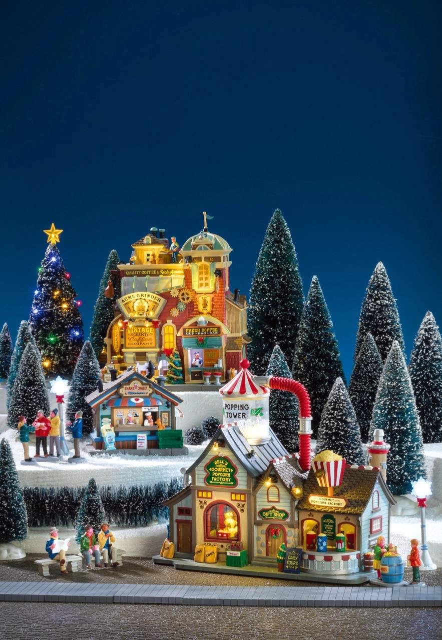 Vneste do svého obývacího pokoje svůj vlastní malý zimní sen. Rozmanité figurky a domečky z vánoční vesničky Lemax vám nabízí neomezené možnosti uspořádání. Je jedno, zda se jedná o letícího Ježíška, veselé bruslaře nebo šťastné děti na kolotoči, vaší fantazii se nekladou žádné meze. Hezké obchůdky lze vzájemně propojit detailními silnicemi. Vánoční atmosféru zajistí velké množství malých stromků.
