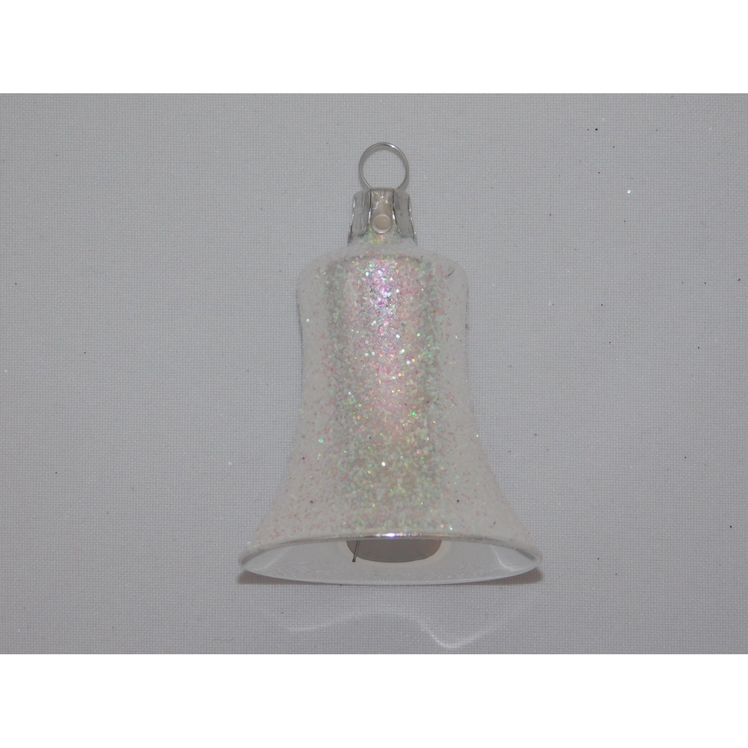 Ornex Skleněná vánoční ozdoba zvonek bílý s posypem 5,5 cm