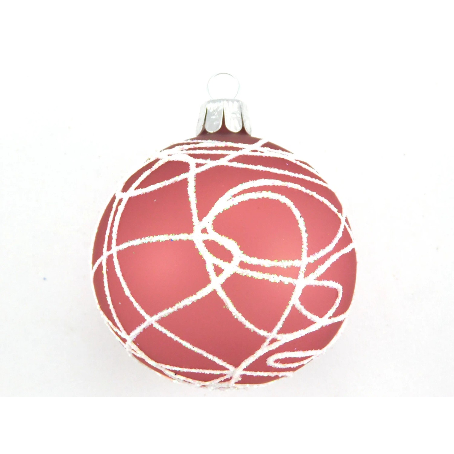 Ornex Vánoční ozdoba skleněná koule s cik-cak linkami růžová, 7 cm