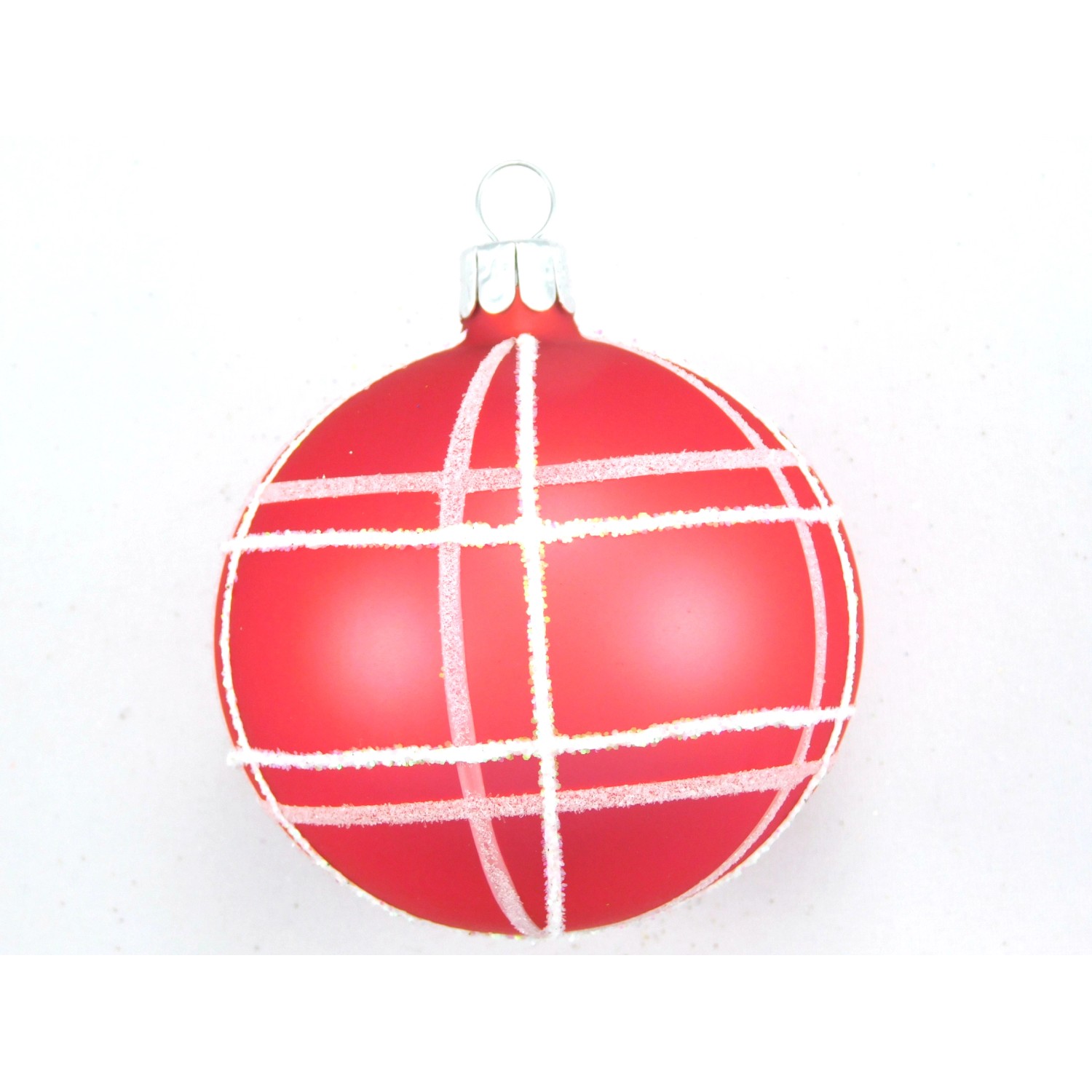 Ornex Vánoční ozdoba skleněná koule s mřížkou růžová, 7 cm