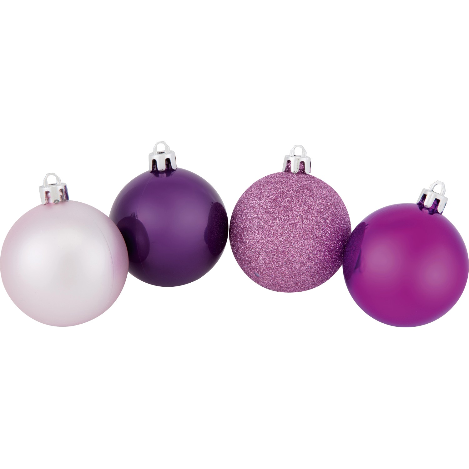 Dekorativní sada ozdob na vánoční stromek představuje moderní mix barev k ozdobení vánočního stromku. Tvoří ji celkem 20 koulí ve čtyřech různých ametystových barevných odstínech. Sada je vyrobena z plastu. Povrch je tmavý matný, světlý matný, lesklý a třpytivý. Každá koule má průměr 6 cm.