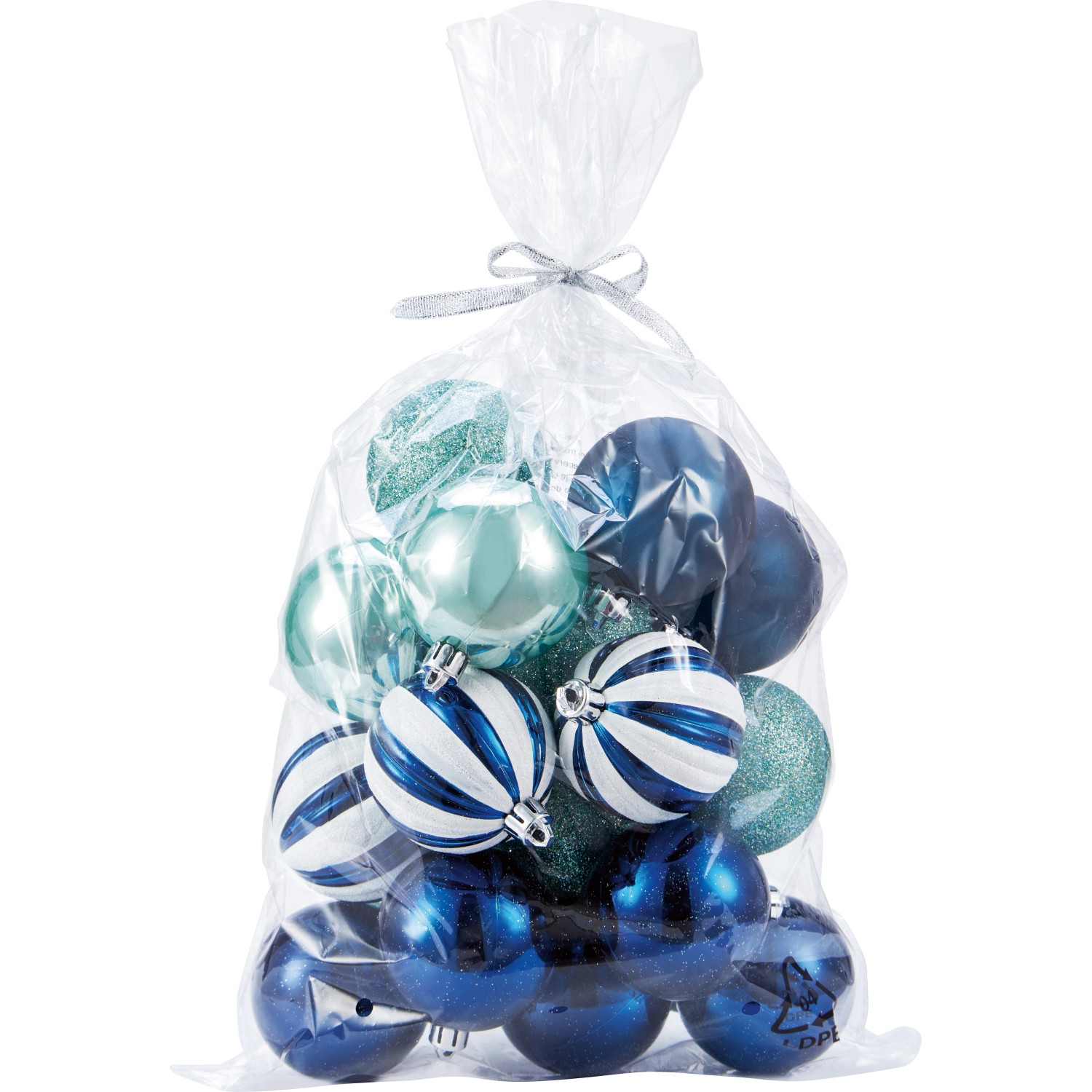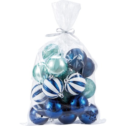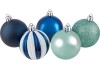 Sada vánočních ozdob slouží k výzdobě vánočního stromečku. Obsahuje klasické kulaté vánoční koule. Celkem je v sadě obsaženo 20 koulí s různým dekorem. Díky designu v modrých a mátových odstínech a pruhovanému vzoru upoutají pozornost na vánočním stromečku. Vánoční ozdoby jsou vyrobeny z plastu a mají dlouhou životnost a jsou odolné proti rozbití. Vánoční koule mají podle provedení matný, lesklý nebo třpytivý povrch. Průměr je 6 cm.