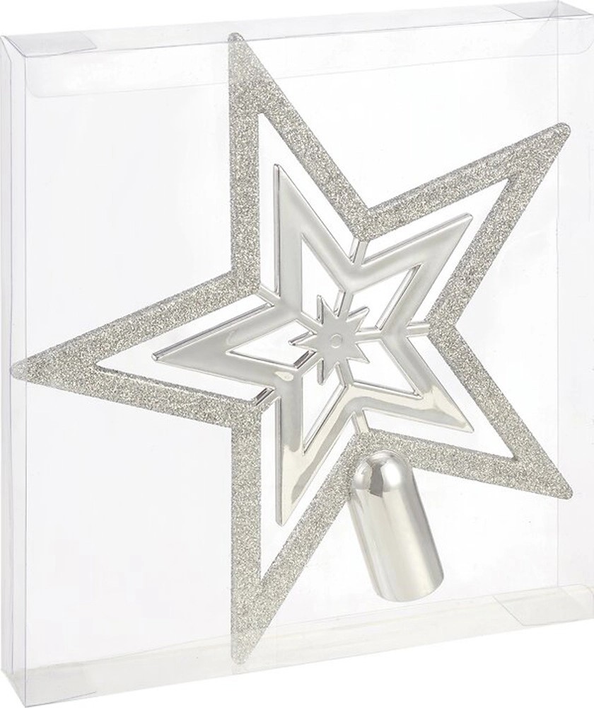 Špička na stromeček hvězda stříbrná 19,5 cm