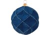 Jednotlivá vánoční koule představuje individuální dekorativní prvek pro zimní období. Dá se univerzálně použít jako stolní dekorace nebo ozdobí vánoční stromeček. Vánoční ozdoba upoutá pozornost svým moderním fasetovým tvarem s vysokými švy. Koule je pomalovaná tmavě modrou barvou. Je vyrobena z plastu a je potažená semišem. Má matný povrch se třpytivými hranami. Průměr činí 8 cm. Pro snadné zavěšení je integrovaná zlatá korunka s okem.