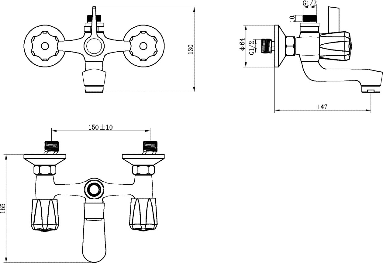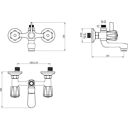 aquaSu Dvoukohoutková vanová baterie Basic 848, chrom, rozteč 150 mm