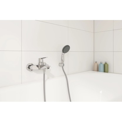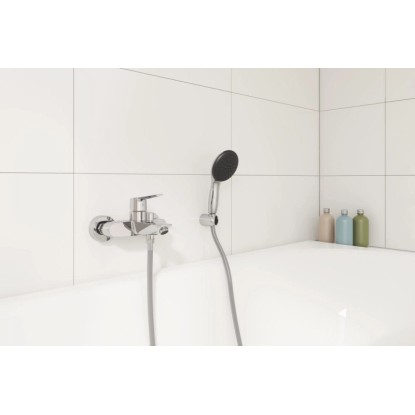 Páková vanová baterie Grohe Start je tvarově i funkčně zdokonalená a přizpůsobená požadavkům moderních koupelen a má štíhlý, moderní profil. Díky optimalizované výšce výtoku a zahnutému perlátoru je baterie uživatelsky příjemnější.