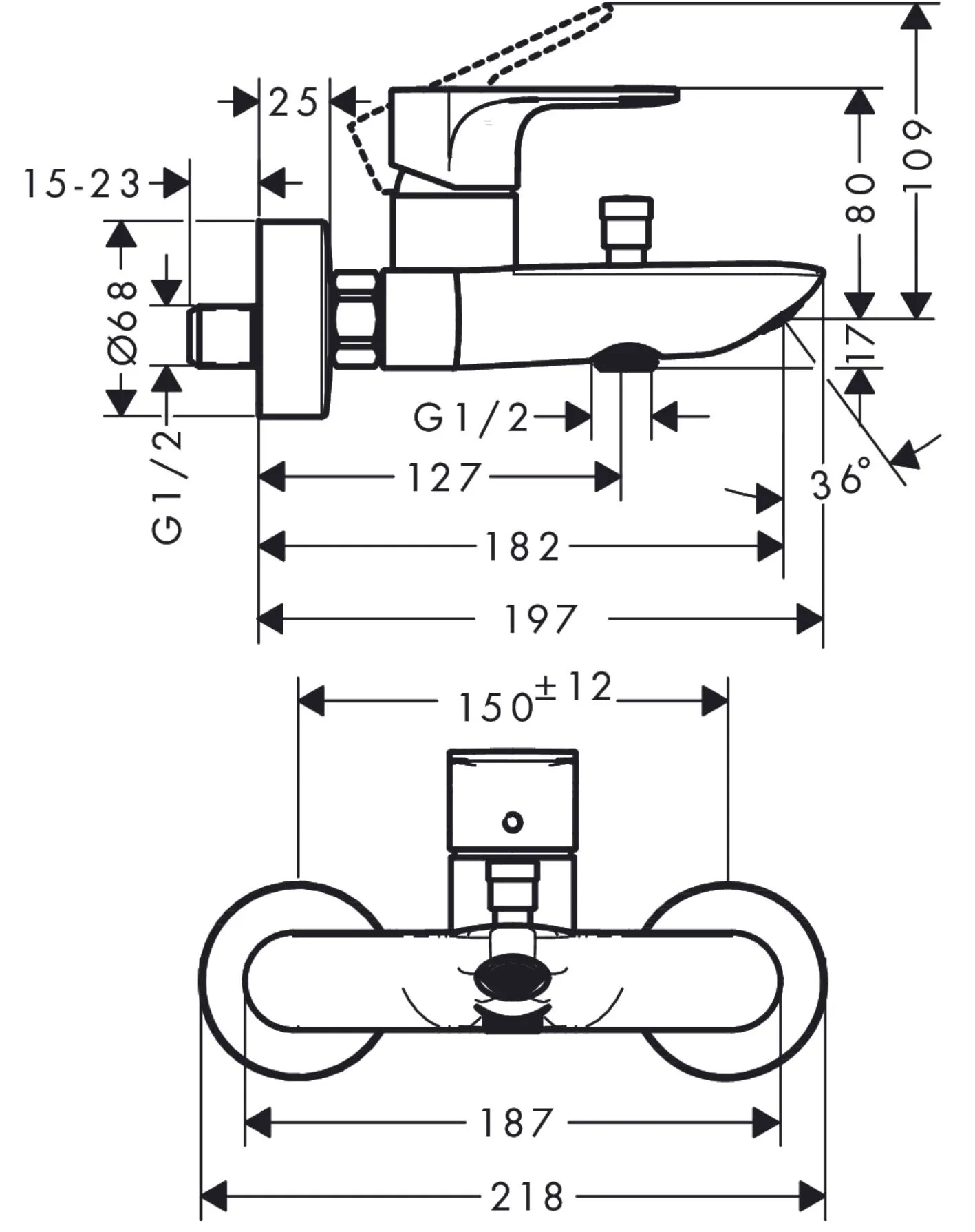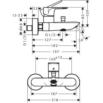 Hansgrohe Nástěnná páková vanová baterie Rebris E, rozteč 150 mm, chrom