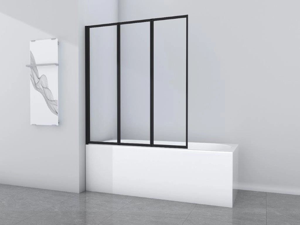 Aurlane Skládací zástěna na vanu Black Star 125 cm x 143 cm černá matná 3křídlá