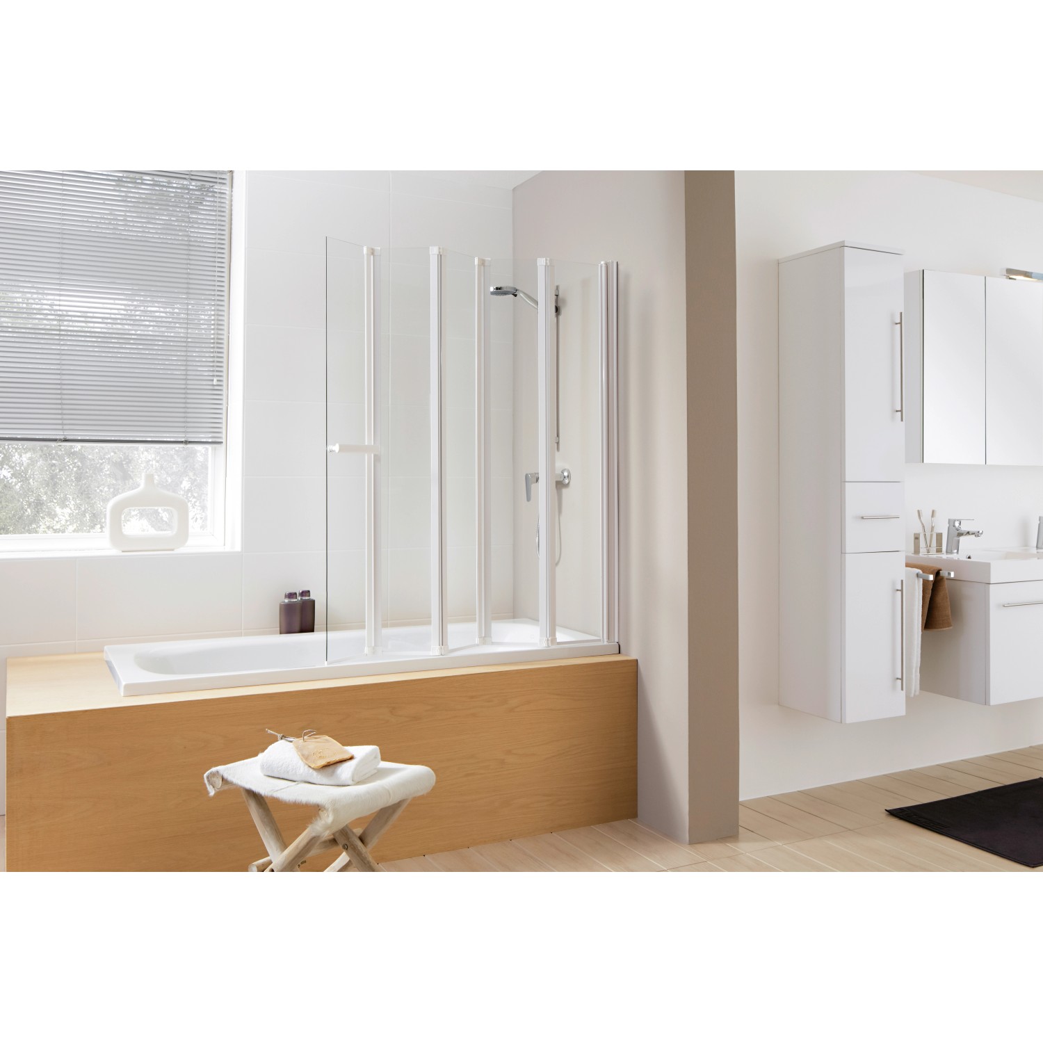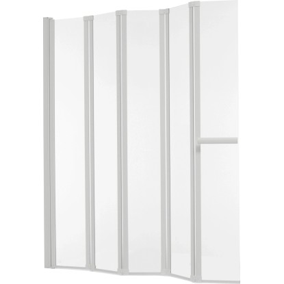 5dílná OBI Deco-Line vanová zástěna Duna III o rozměrech 140 cm x 120 cm zaujme jednoduchým designem. Jednotlivé díly mají rozměry 21,5 cm - 19,1 cm - 19,1 cm - 19,1 cm - 20,3 cm. Tato varianta je vyrobena z 4 mm bezpečnostního skla a poskytuje maximální ochranu proti postříkání. Jednotlivé úzké díly je možno prostorově úsporně a nenápadně složit. Elegantní bílé hliníkové profily zajišťují značnou stabilitu. Vanová zástěna je montovatelná z obou stran. Součástí dodávky je montážní materiál.