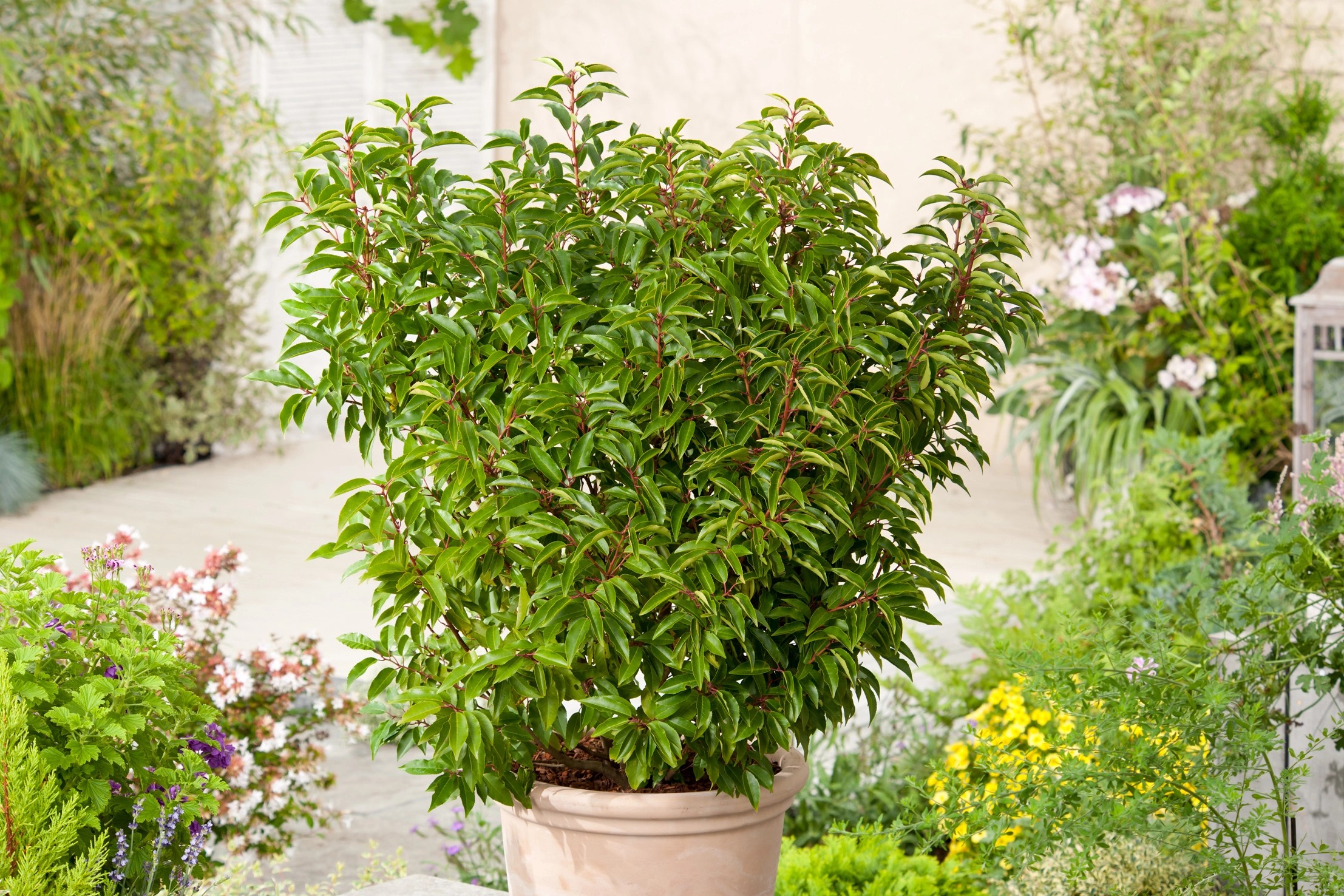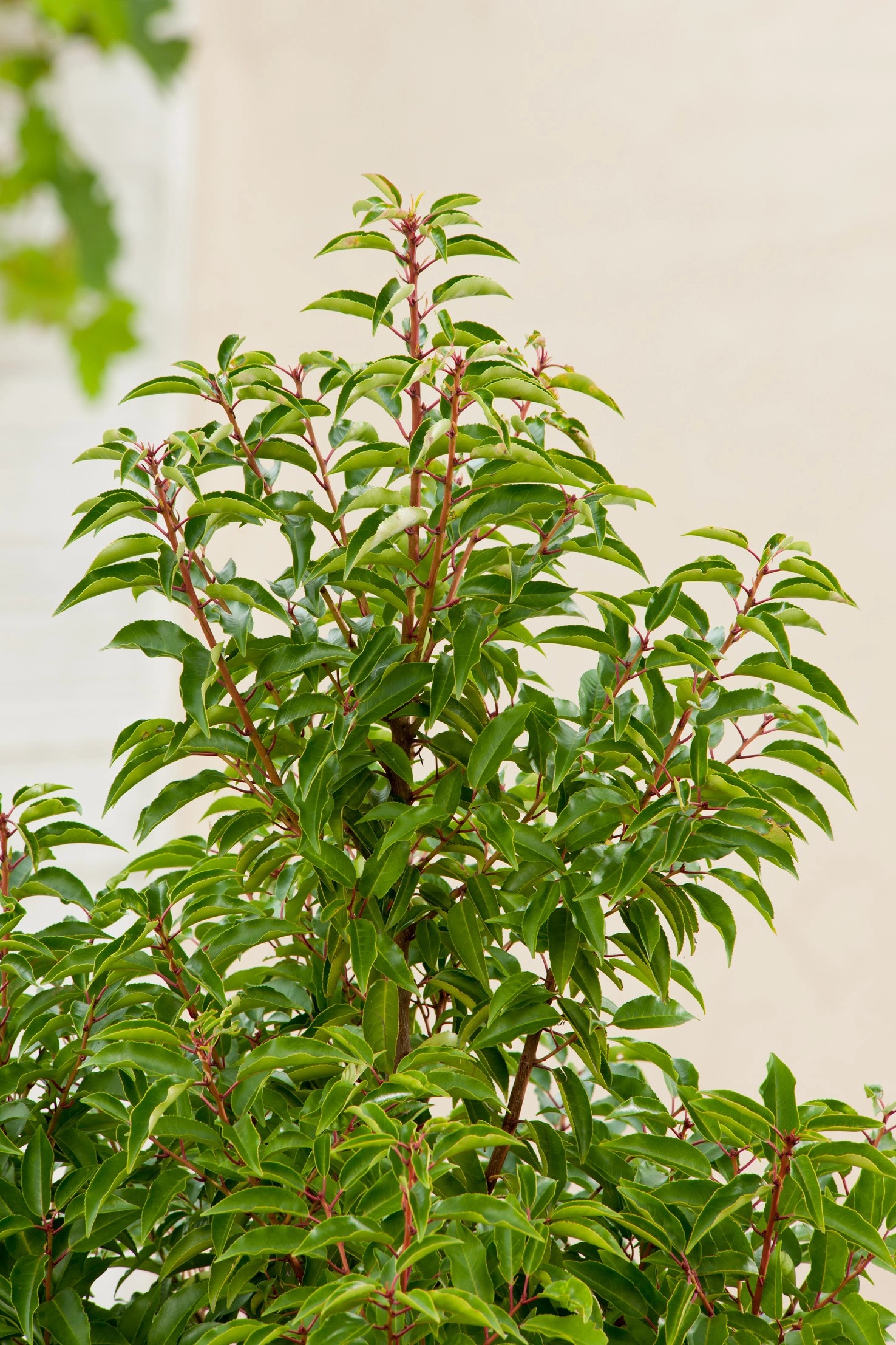 OBI Living Garden bobkovišeň portugalská "Angustifolia" (Prunus lusitanica) je stále zelená listnatá dřevina, která se vyznačuje tím, že skvěle snáší řez. Tmavě zelené listy ve spojení s červenými řapíky listů a špičkami výhonů vytvářejí po celý rok zajímavý barevný kontrast. Bobkovišeň portugalská "Angustifolia" (Prunus lusitanica) je robustní a nenáročná.