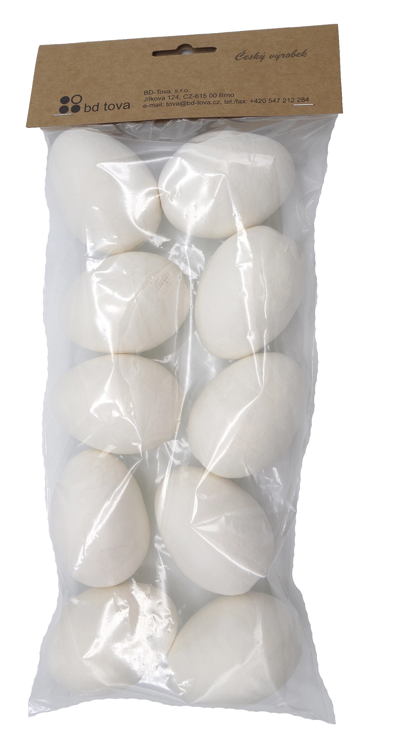 Velikonoční dekorace z ekologických materiálů. Vatové vajíčko v bílé barvě. Rozměry: 60 x 42 mm.