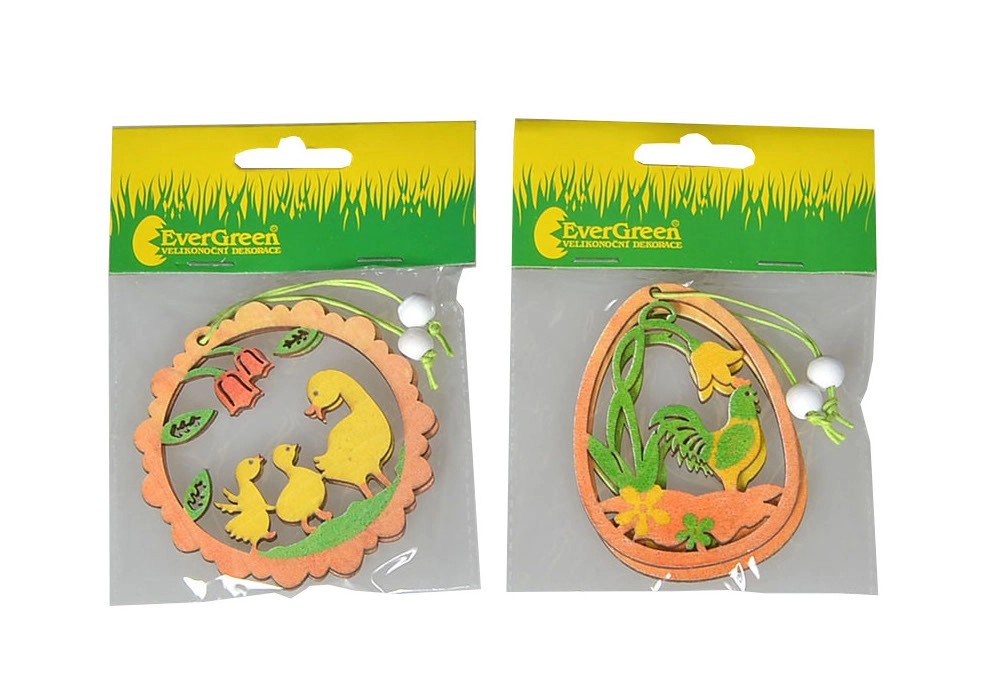 Dřevěné závěsné dekorace k dozdobení každého jarního i velikonočního aranžmá. Balení obsahuje 2 ks.