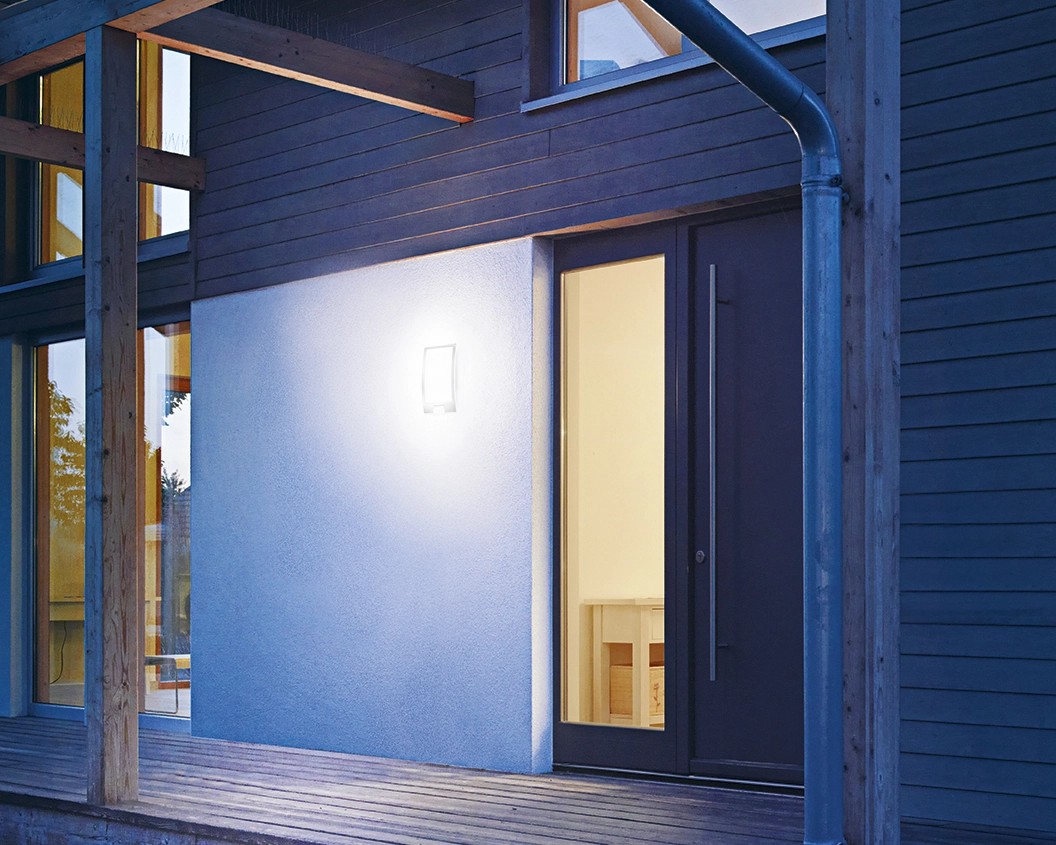 Venkovní nástěnné svítidlo s pohybovým senzorem STEINEL L22 SENZORPříjemné řešení osvětlení. Designové venkovní svítidlo s infračerveným senzorem přepínané STEINEL L 22 s atraktivním krytem z leštěné nerezové oceli, ideální pro vchody do domu a na jeho čelní strany. Úhel detekce 180°, dosah až 10 m, nastavitelný práh času (8 sekund až 35 minut) a soumraku (2-2000 Lux), senzor lze vertikálně otočit o 90 °C.