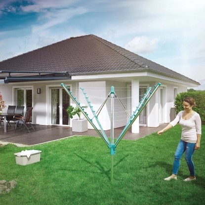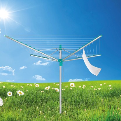 S celkovou délkou šnůr 40 metrů poskytuje Linomatic 400 Easy dostatečný prostor pro sušení až čtyř praček prádla na čerstvém vzduchu najednou. Prádlo schne šetrně a přirozeně ve větru a nestojí to ani korunu elektřiny.
