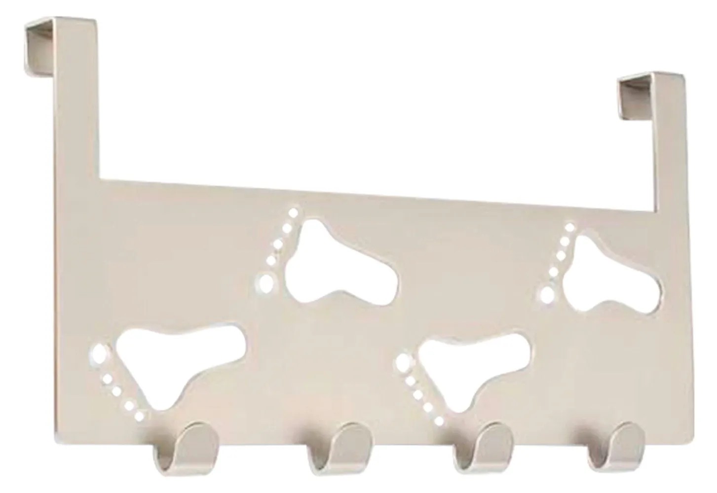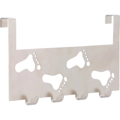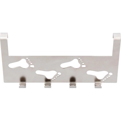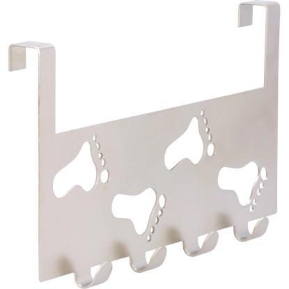 Háčková lišta na dveře z kovu má matný niklový vzhled. Její rozměry jsou 14 cm x 25,5 cm x 3,4 cm. Lišta má 4 háčky.