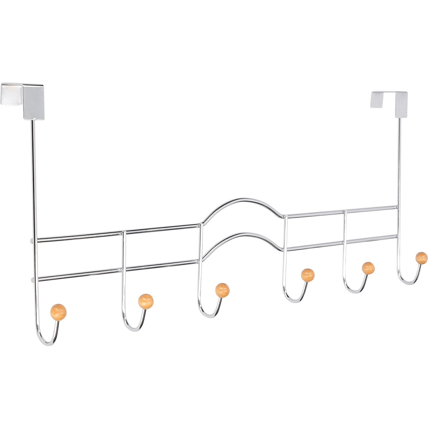 Siro věšák na dveře 1829-490 je vyroben ze zinkového tlakového odlitku se 6 možnostmi zavěšení. Háčky jsou dekorativně vybaveny dřevěnou kuličkou z lakovaného javoru a lze na ně umístit například bundy, šály nebo i opasky. Hodí se pro dveře tloušťky 32 mm a dá se zavěsit na profil dveří, přičemž se dveře budou i nadále bez problémů zavírat.