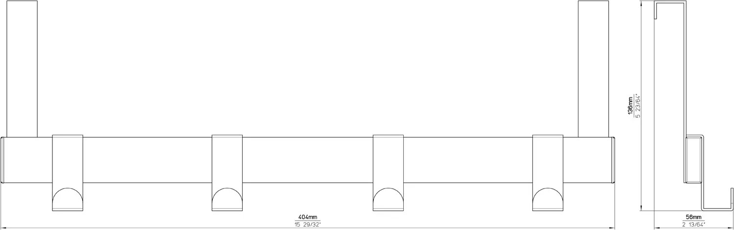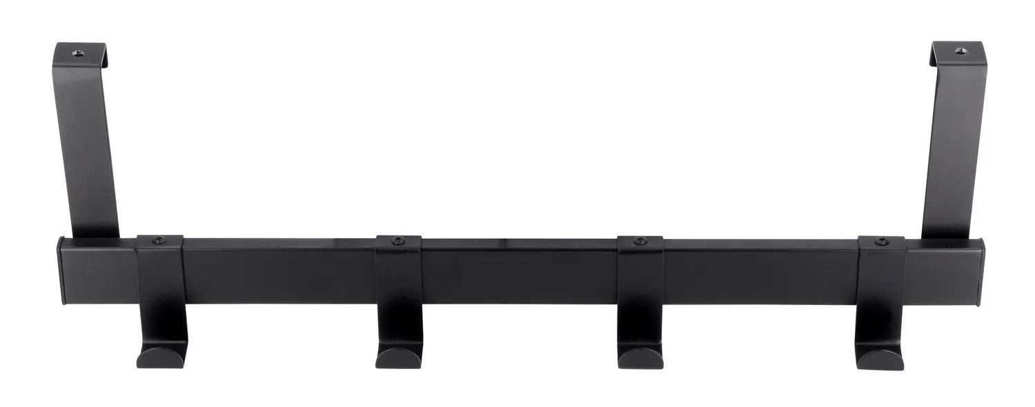 Moderní věšák na dveře SIRO 1443 z oceli se 4 možnostmi zavěšení a délkou 404 mm je vhodný pro tloušťku dveří 17 mm. Na šatní skříní zaujme moderním povrchem v černé matné barvě a nadčasovým designem. Není potřeba vrtání ani lepení. Dá se jednoduše zavěsit, dvířka se dál bez problémů zavírají. Organizér se stylem, který vytvoří prostor například pro bundy, šály nebo opasky.