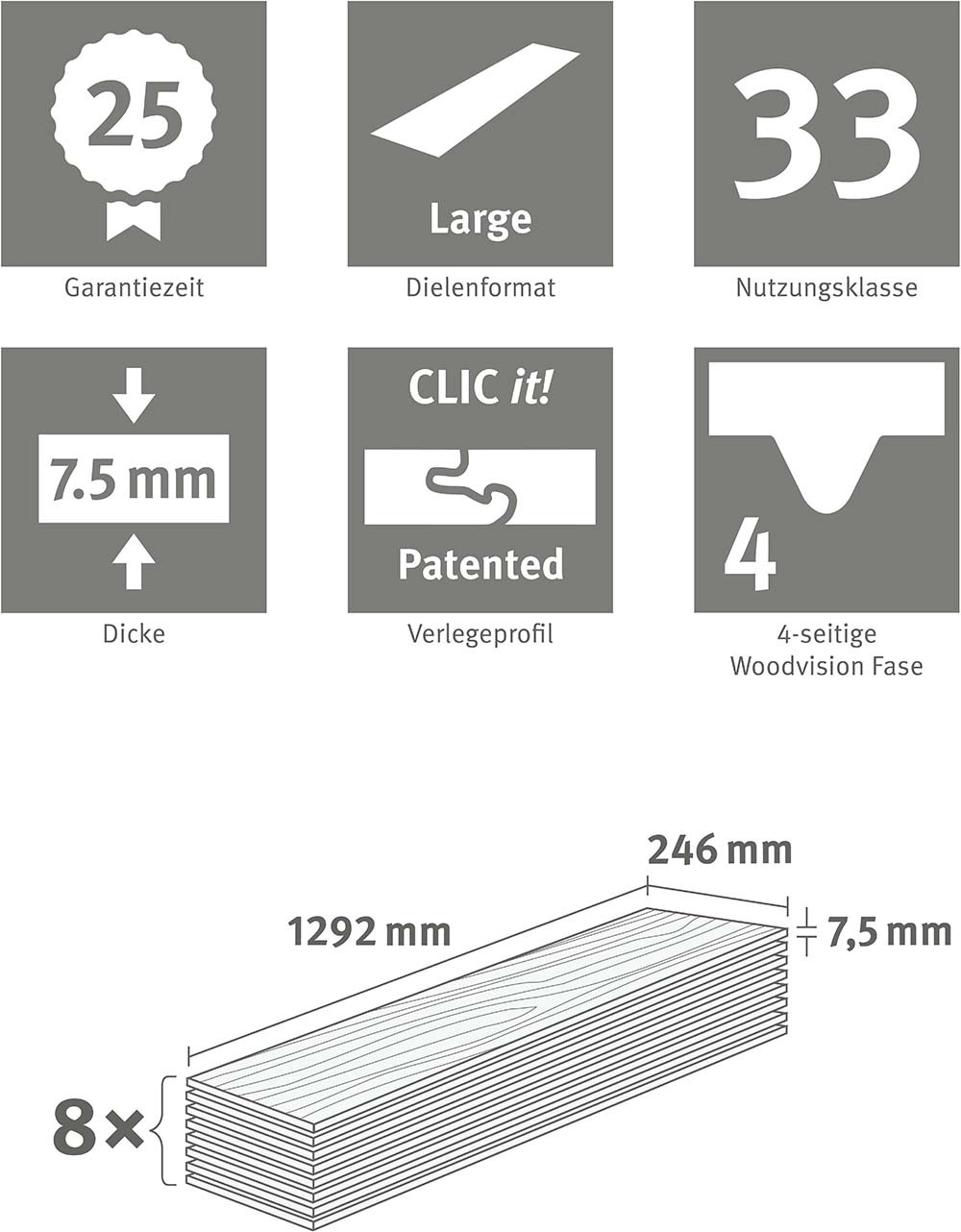 Neřešte každodenní starosti s podlahami Egger Design GreenTec a nelamte si hlavu nad rozlitou vodou na podlaze! Podlahy jsou odolné vůči vodě díky své speciální struktuře s voděodolným povrchem s nosnou deskou GreenTec, a zároveň i flexibilnímu montážnímu systému CLIC it! Jsou tak ideální do vlhkých prostor jako jsou koupelny a kuchyně. Protiskluzový povrch přitom zaručuje bezpečí při chůzi a stabilitu. Když už mluvíme o chůzi: aby nikoho nerušila rychlá a hlučná chůze, snižuje kročejový hluk a tepelný odpor integrovaná podložka z přírodního korku.