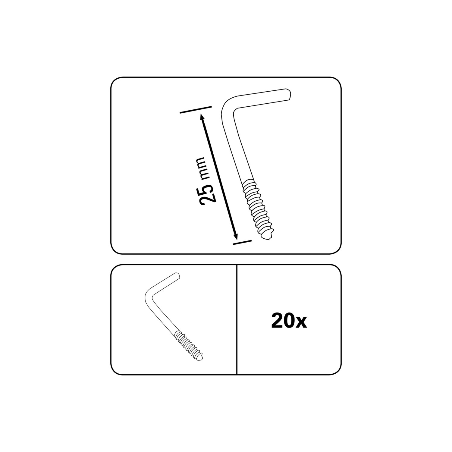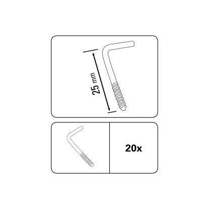 Šroubovací hák pro vitrážní tyč, pozinkovaný, matný stříbrný, 20 ks, 2,5 cm