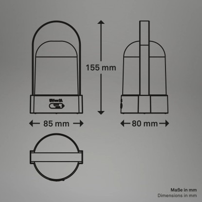 Lampa je vybavena vyměnitelnou baterií s kapacitou 600 mAh, která umožňuje až 24 hodin svícení při nízkém jasu. Díky přiloženému 0,5 m USB-C kabelu se stolní lampa plně nabije za pouhé 2,5 hodiny. Stupeň krytí IP44 zajišťuje bezpečné použití nejen v interiéru, ale i v exteriéru. Kompaktní, přívětivé přepravní rozměry 90 x 80 x 155 mm zajišťují úspornou a snadnou přepravu. Dokonale se tak lampa BRILO Asa hodí do jakéhokoli prostředí, ať už doma, v kanceláři nebo na cestách a nabízí všestranné využití.