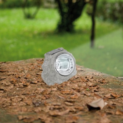 Eglo Solární kámen je svítidlo ve tvaru kamene, který je velmi oblíbeným typem zahradního osvětlení. Kámen je v barvě šedé a jeho velikost je 16 cm x 12 cm x 11 cm. Kámen můžete položit kdekoliv na Vaší zahradě. Pár jich umístěte mezi keře a stromy, podél cestičky zahradou k domu nebo okolo bazénu. Vytvoří krásnou intimní atmosféru.