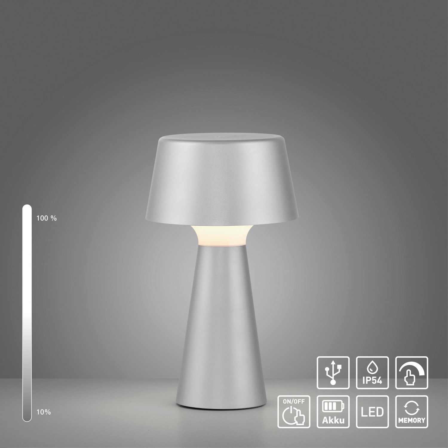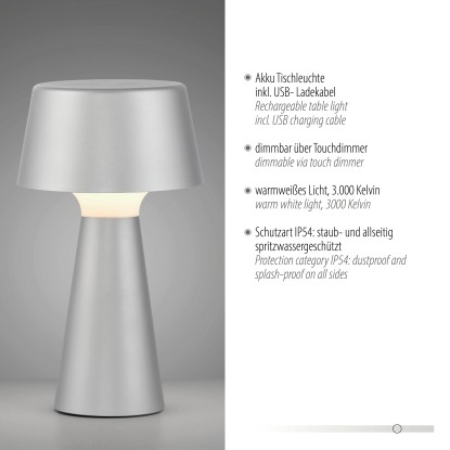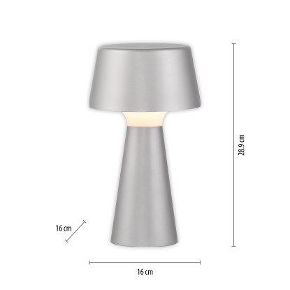 Just Light. Nabíjecí stolní LED lampa Abera IP54 stříbrná pr. 16 x 28,9 cm