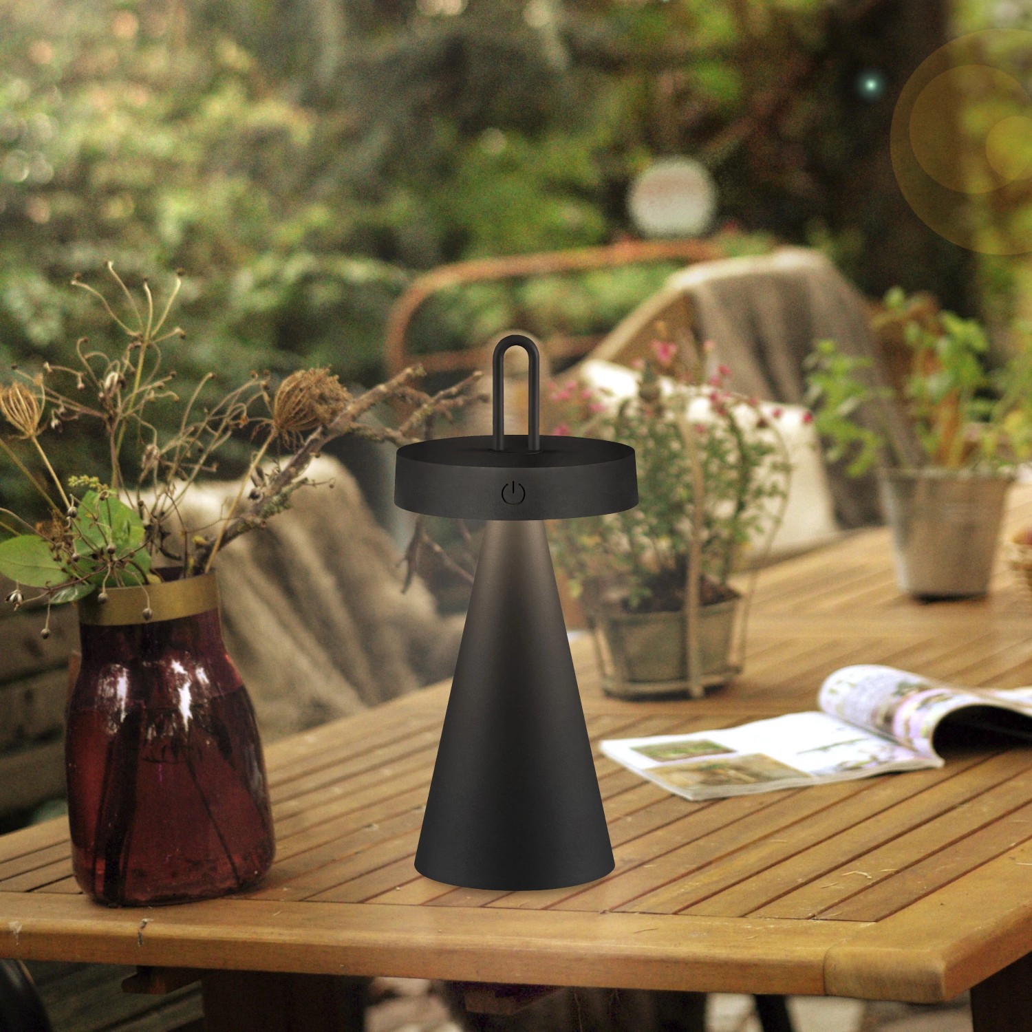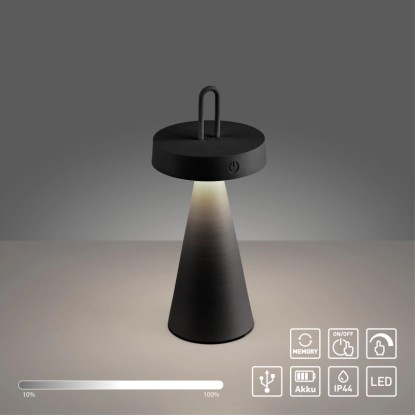 Just Light. Nabíjecí stolní LED lampa Alwa IP44 černá pr. 12,8 x 28,9 cm