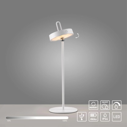 Just Light. Nabíjecí stolní LED lampa Amag IP44 bílá pr. 15 x 47,2 cm