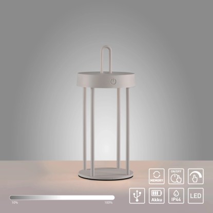 Just Light. Nabíjecí stolní LED lampa Anselm IP44 greige pr. 12,8 x 28,4 cm