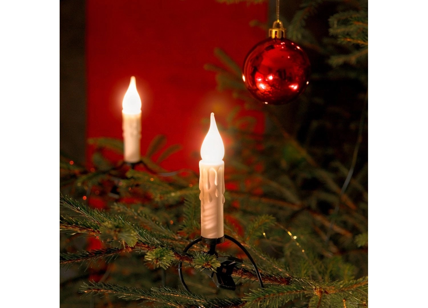 K nerozeznání opravdově vypadají svíčky interiérového světelného řetězu zejména po ozdobení vašeho vánočního stromku. 20 žárovek s voskovým vzhledem v klasické bílé barvě a s žárovkami E10 ve tvaru plamínku s efektem námrazy vytváří vánoční atmosféru jako skutečné svíčky - jen bez nebezpečí požáru a kapajícího vosku.