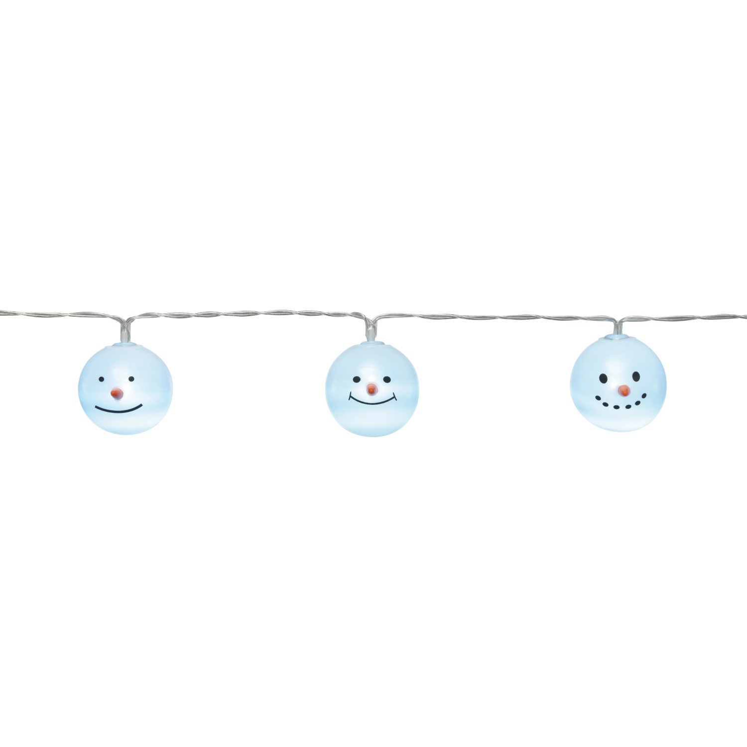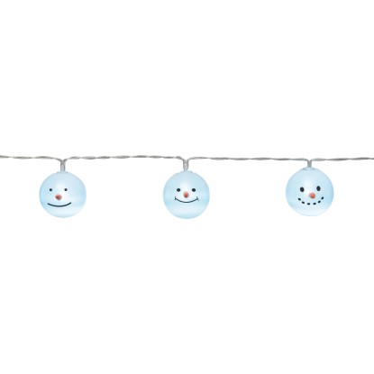 LED světelný řetěz sněhulák dodá vánoční akcenty a zajistí působivé osvětlení každého domova. Dle osobního vkusu jím lze ozdobit komodu, parapet nebo stůl. Světelný řetěz je opatřen dekorací ve tvaru hlavy sněhuláka a 10 LED studené bílé barvy. Kabel je nenápadný díly průhlednému provedení. Celková délka LED světelného řetězu činí 90 cm. Přívod měří 30 cm a vzdálenost mezi žárovkami činí 10 cm. Osvětlení světelného řetězu zajišťují ekologické LED s dlouhou životností. Navíc přesvědčí minimální spotřebou elektřiny a nízkou produkcí tepla. Světelný řetěz je napájen 2 bateriemi AA. Díky tomu lze dekoraci libovolně použít nezávisle na zásuvce v místnosti.