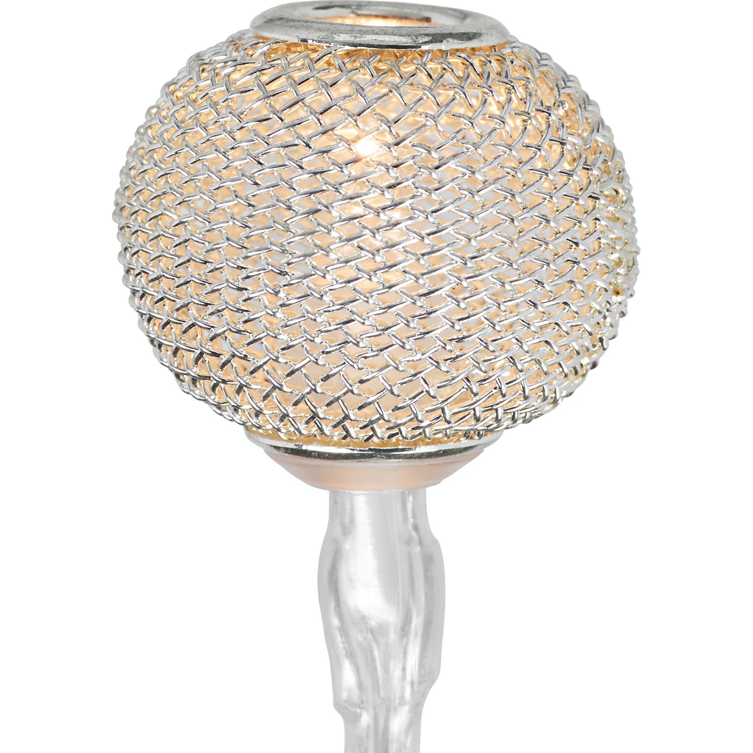 Na každé LED diodě je nasazená stříbrná kovová baňka o průměru 2,5 cm. Dekorativní baňka okouzlí svým ušlechtilým a zároveň hravým vzhledem. Díky jedinečné schopnosti vytvořit kovovou síťku se vytvoří pěkné světelné efekty. Kabel zůstává díky transparentní barvě nenápadný. Světelný řetěz má celkovou délku 1,65 m a přívodní kabel 30 cm. Vzdálenost mezi světly je 15 cm.