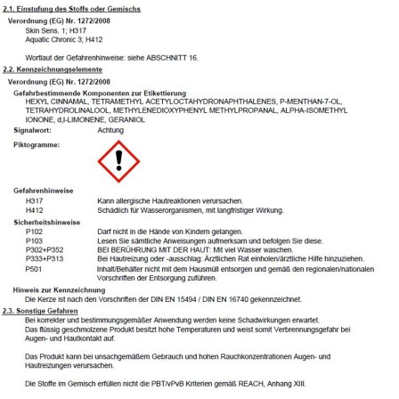 Všechny vůně jsou inspirované přírodou a proměňují prostor dle osobnosti na individuální prostředí. K tomu používá výrobce výhradně přírodní a přírodně identické ingredience. Doba hoření je 26 hodin.