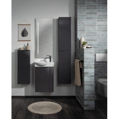 Série koupelnového nábytku FACKELMANN LUNA zaujme svým elegantním antracitovým vzhledem ve vysokém lesku, který zapadne do každé koupelny. Korpusy skříněk mají matný antracitový vzhled, příčky a zadní stěny mají stříbrnošedou barvu. Veškerý koupelnový nábytek LUNA lze jednoduše kombinovat dle libosti.