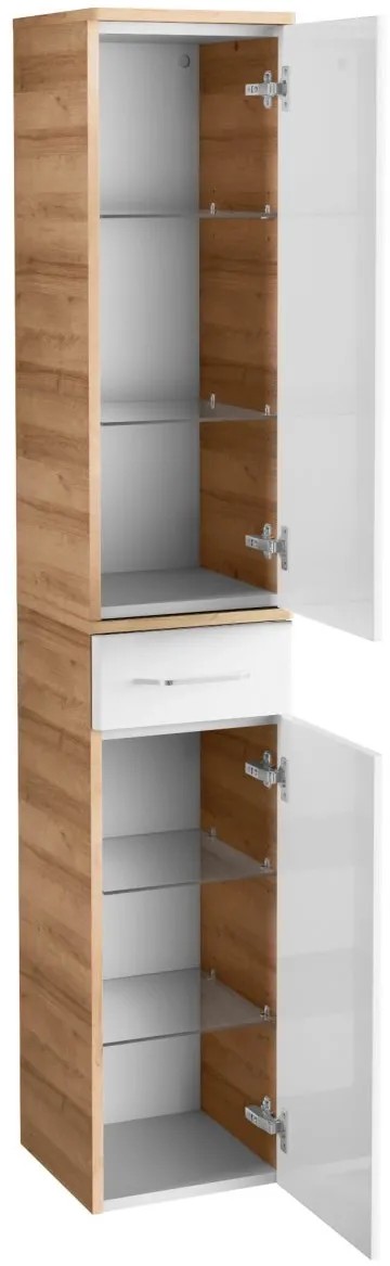 Fackelmann Koupelnová závěsná vysoká skříňka MILANO suk.dub/bílá 302 x1652x320mm