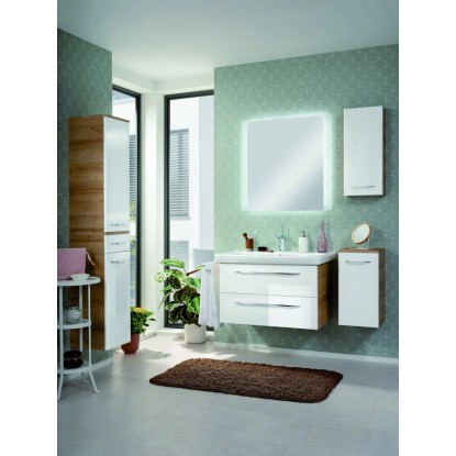 Série koupelnového nábytku FACKELMANN MILANO zaujme svým harmonickým, atraktivním a vkusným designem v příjemných a uklidňujících barvách. Koupelnový nábytek série MILANO je k dispozici ve 3 barevných provedeních - bílá ve vysokém lesku, sukatý dub a kombinace bílá ve vysokém lesku a sukatý dub. Korpusy skříněk mají matnou bílou barvu a příčky a zadní stěny mají stříbrnošedou barvu. Veškerý koupelnový nábytek série MILANO lze jednoduše kombinovat dle libosti mezi sebou. Kromě koupelnového nábytku v této série naleznete také umyvadla, doplňkové osvětlení a zrcadla.